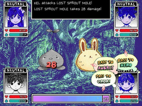 As a game that primarily deals with a fear of the known, Omori resonates with me a lot. Although it's a bit of an overused trope in indie circles, depicting this kind of stuff is no mean feat. Everyone deals with mental illness differently, and one person's "realistic" might be the next's "playing into harmful stereotypes in an exceedingly problematic way". While a certain knife initially made me turn my head, I found things were ultimately portrayed respectfully and realistically. The game juggles with heaps of issues in a way that is honestly pretty impressive for something made in RPG Maker.4 I actually forgot it was made in that engine sometimes; the level of thought and flair would be great for even a Unity title.